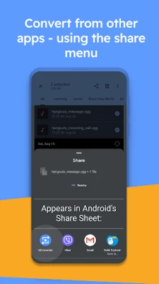 ✓ Recognize and open unknown file types: If you have a file with a missing or corrupted filename extension, MConverter will analyze the file, try to guess its real format and offer to convert it to other formats you can already use on your device. This usually fixes Android's "Can't open file" error.