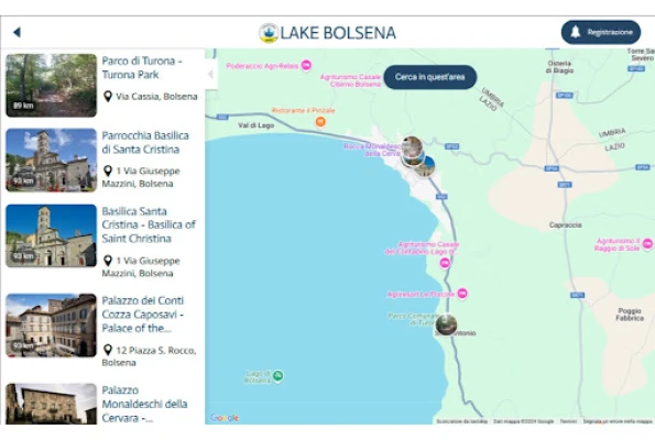 L’App Lake Bolsena è un’applicazione di facile utilizzo che porta il turista a scoprire la storia, le bellezze, i prodotti del lago di Bolsena e della Tuscia. L’utilizzatore avrà un’informazione descrittiva, anche attraverso il supporto di immagini e video, sui luoghi di interesse storico - culturale, attività commerciali, strutture ricettive, ristoranti ed eventi. L’utente sarà guidato per mano e apprezzerà la nostra ospitalità senza pensieri e timori, sarà tutto semplice ed efficace, grazie anche alla geocalizzazione che permetterà di raggiungere i luoghi, sfruttando al meglio il tempo della vacanza.