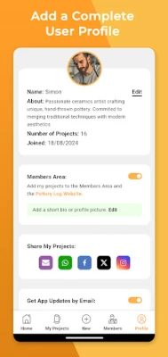 Proud of your latest creation? Share it directly from Pottery Log to your favourite social media platforms or via a unique link to friends and family. Let your art inspire others and invite them to witness your pottery journey.