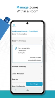Configuration Complete zone configuration directly from your mobile device. Adjust time schedules, scenes, occupancy rules, and dimming preferences—all in one place.