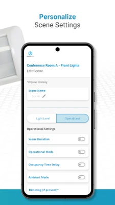 Scene Control Create scenes to adjust zone behavior—including occupancy modes, timers, and trim levels—or simply set desired light levels with ease.